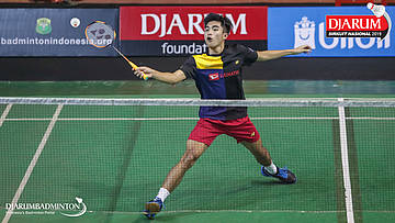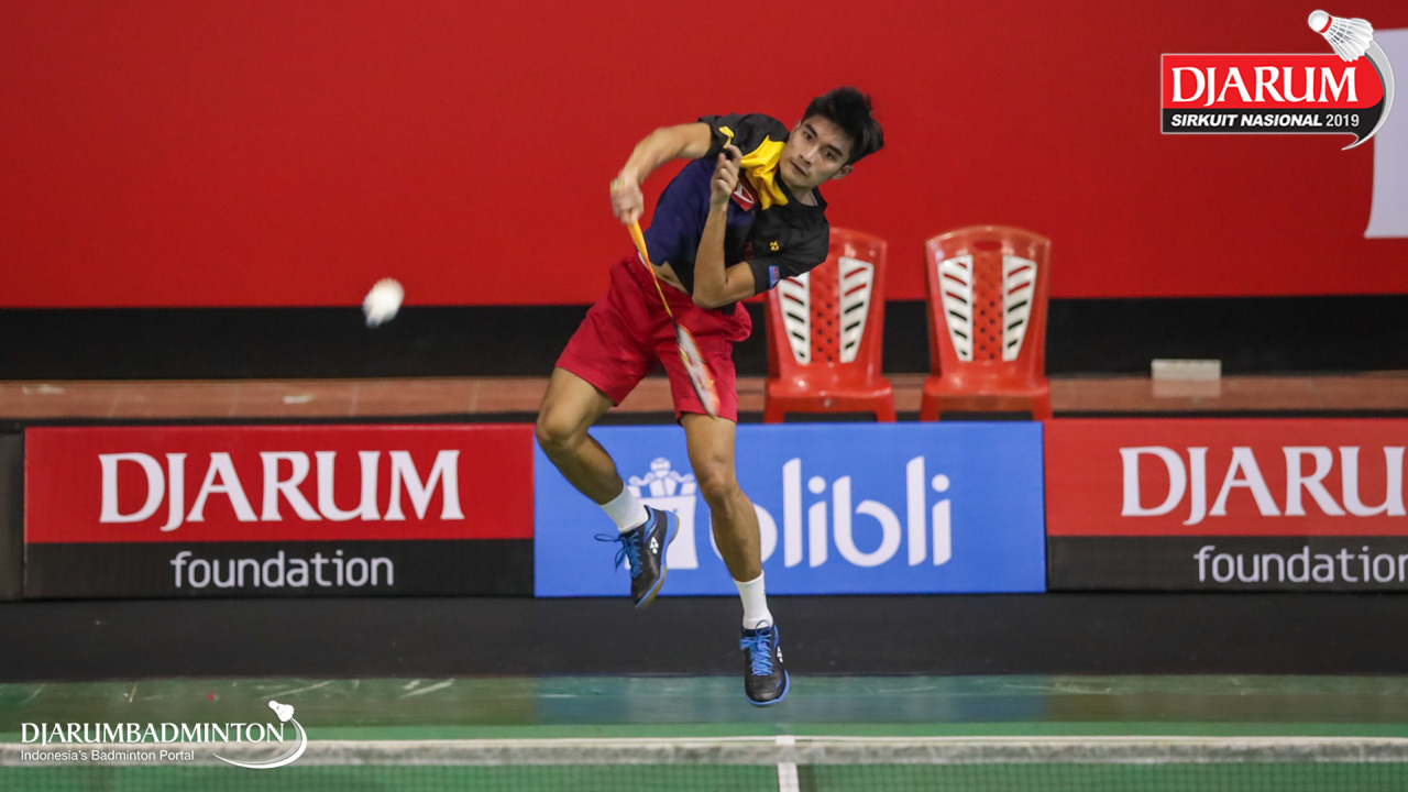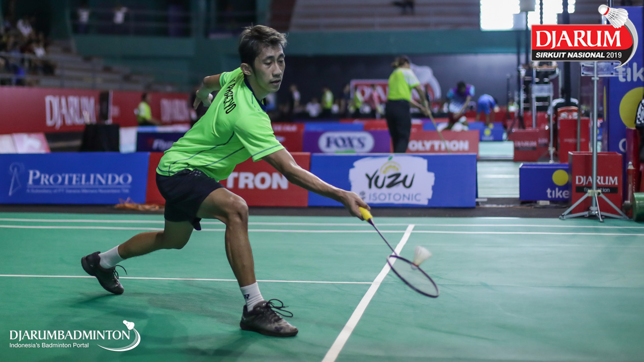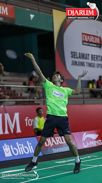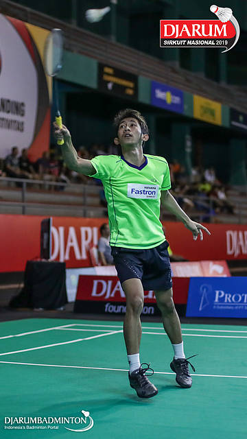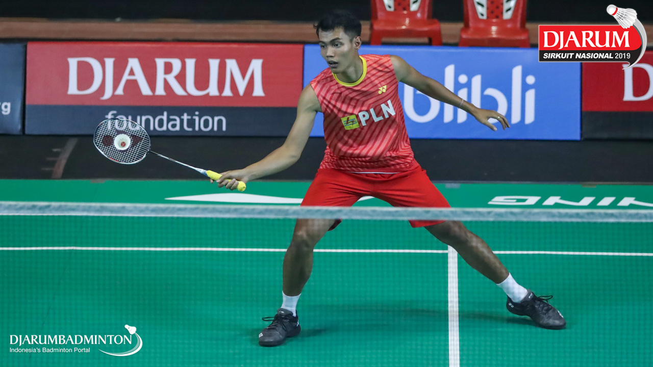 Panji Ahmad Maulana (Daihatsu Candra Wijaya) bersiap menyambut shuttlecock