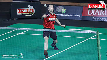 Michelle Pricilia Liwongan Lie (Sarwendah Badminton Club, Jaktim) bersiap menyambut shuttlecock