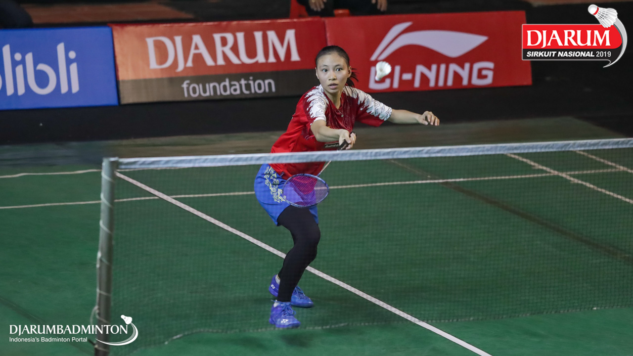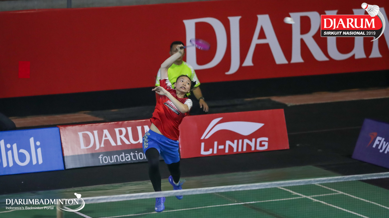 Michelle Pricilia Liwongan Lie (Sarwendah Badminton Club, Jaktim) mengembalikan serangan