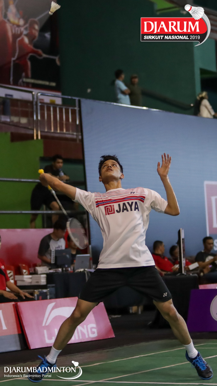 Ahmad Raihan Ishak (PB Victory Bogor, Jaktim) mengembalikan shuttlecock
