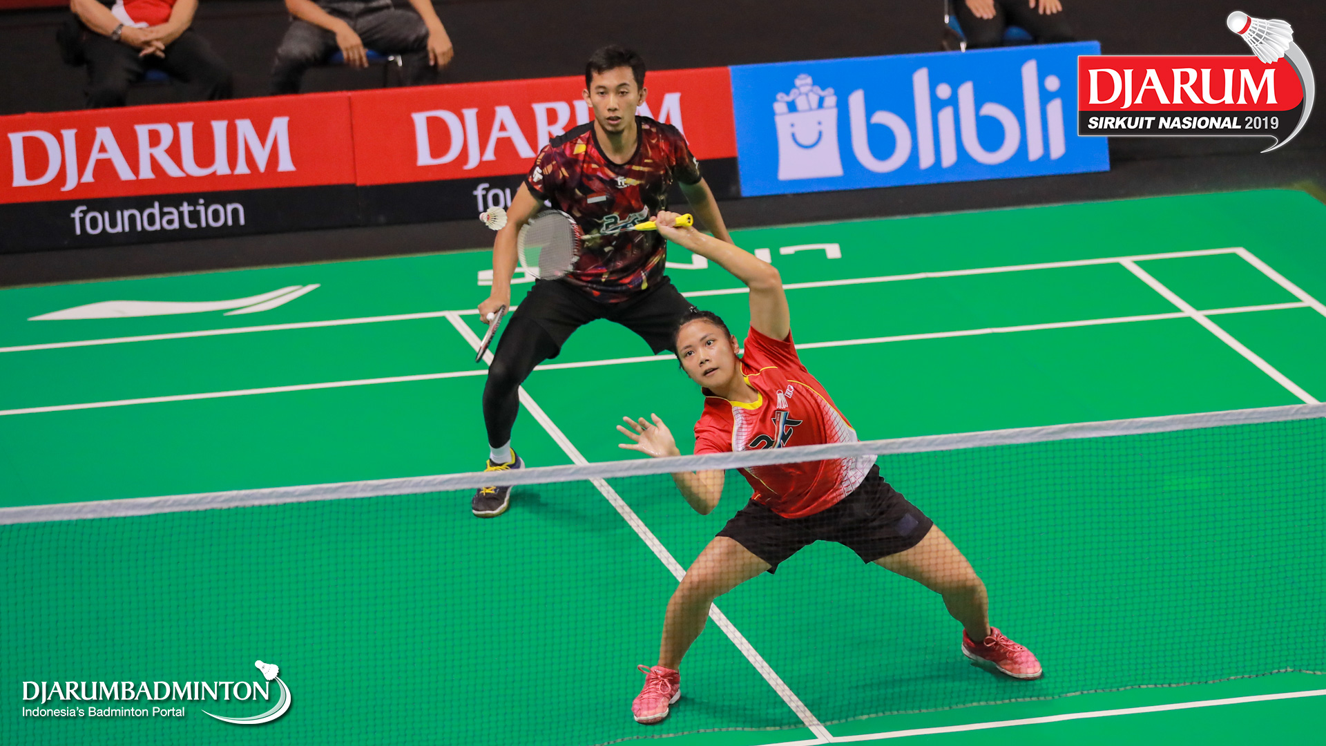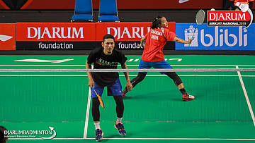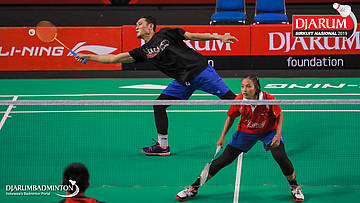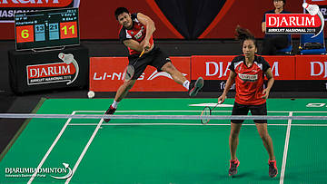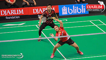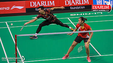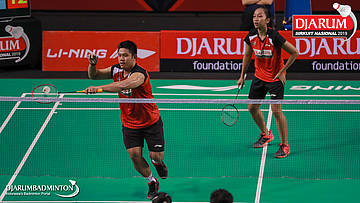 Yantoni Edy Saputra+Rosyita Eka Putri Sari (PB Djarum, Kudus) menyambut shuttlecock