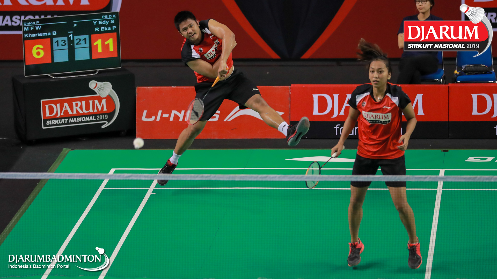 M. Fauzan Wardhana+Kharisma Budiwati (Union Palembang) berusaha mengembalikan shuttlecock