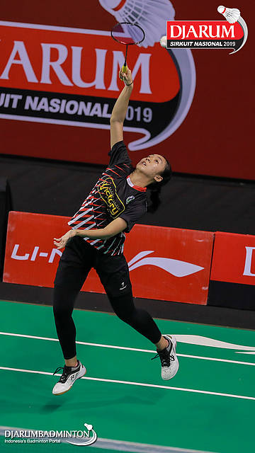 Melsya Nur Fitriani (PB Victory Bogor, Jaktim) menggapai shuttlecock