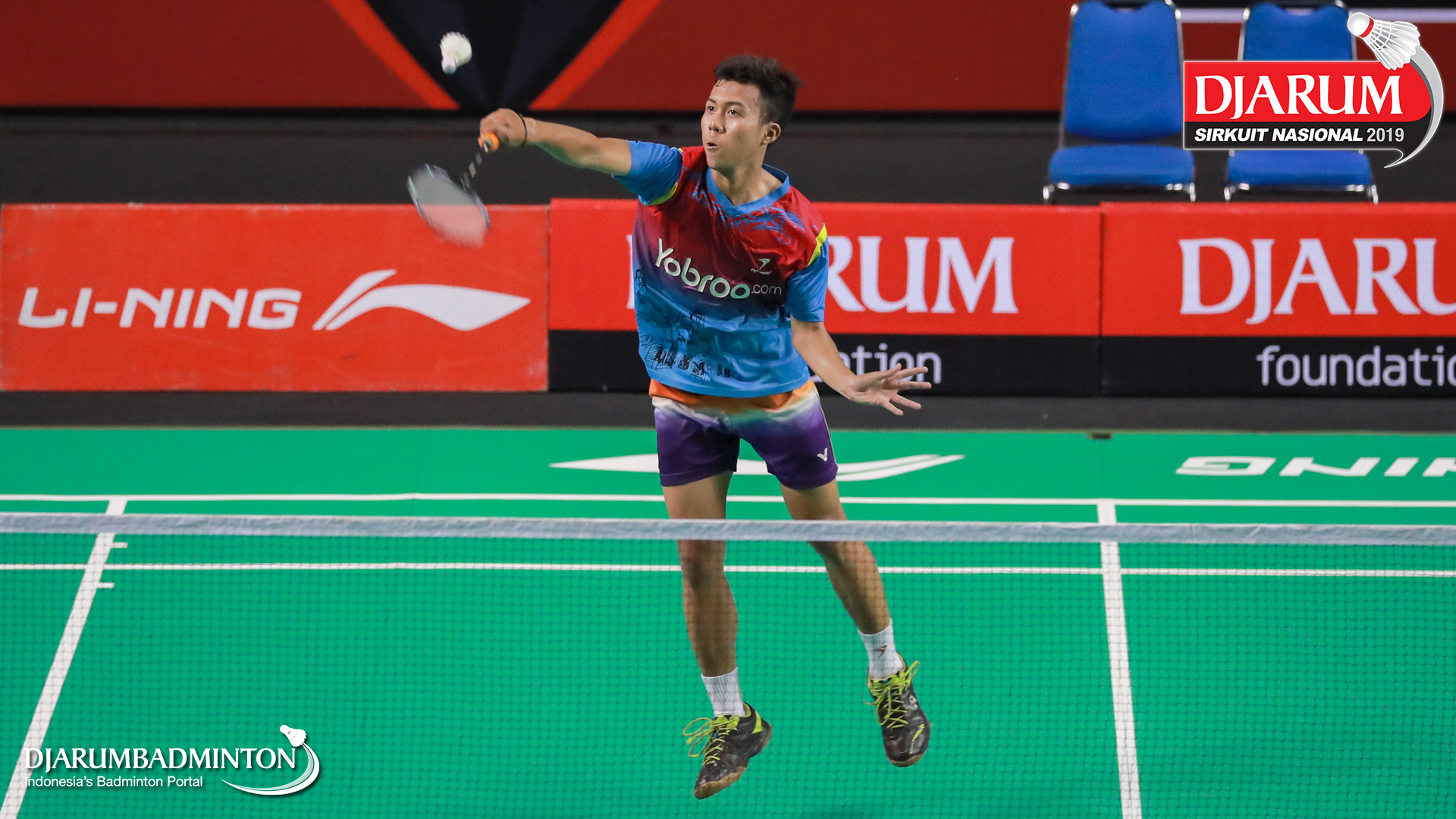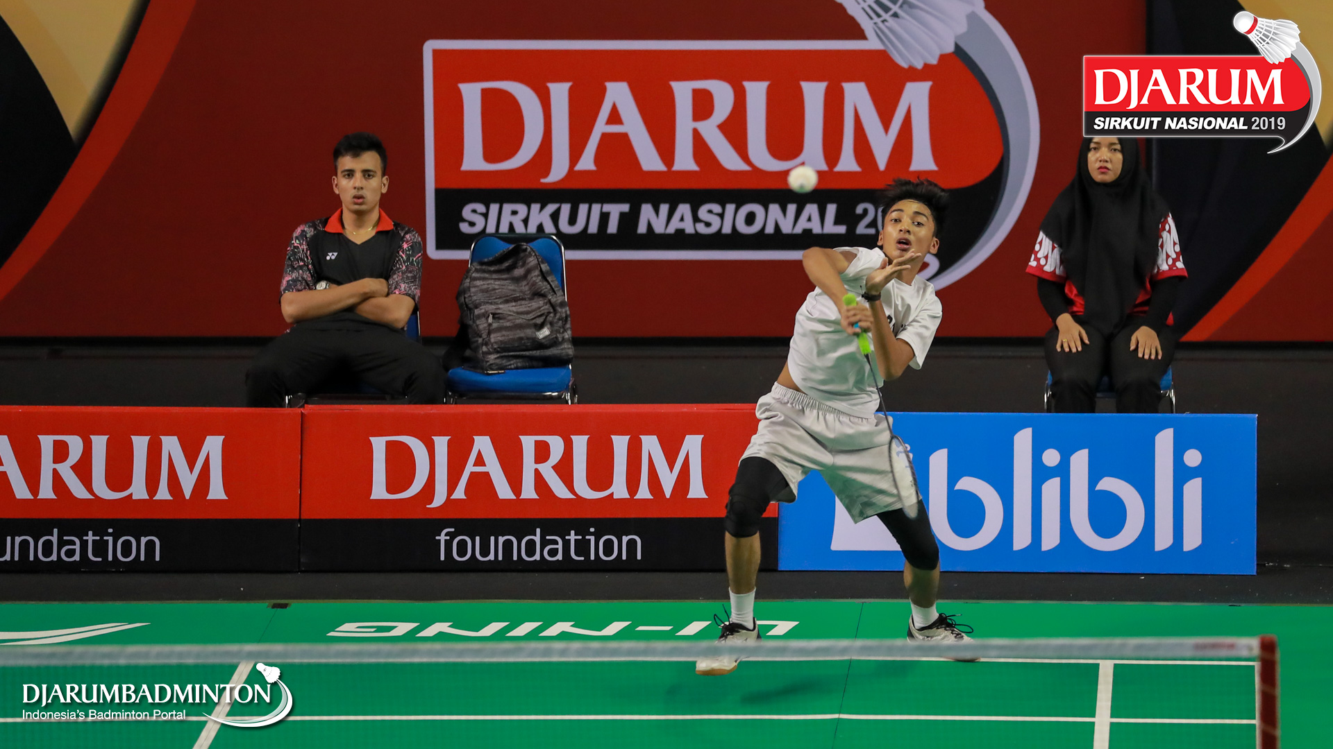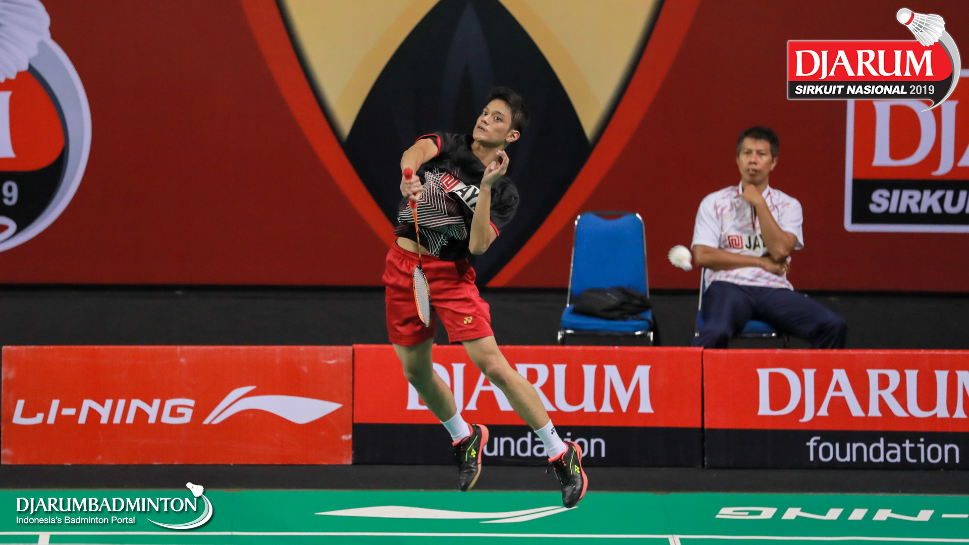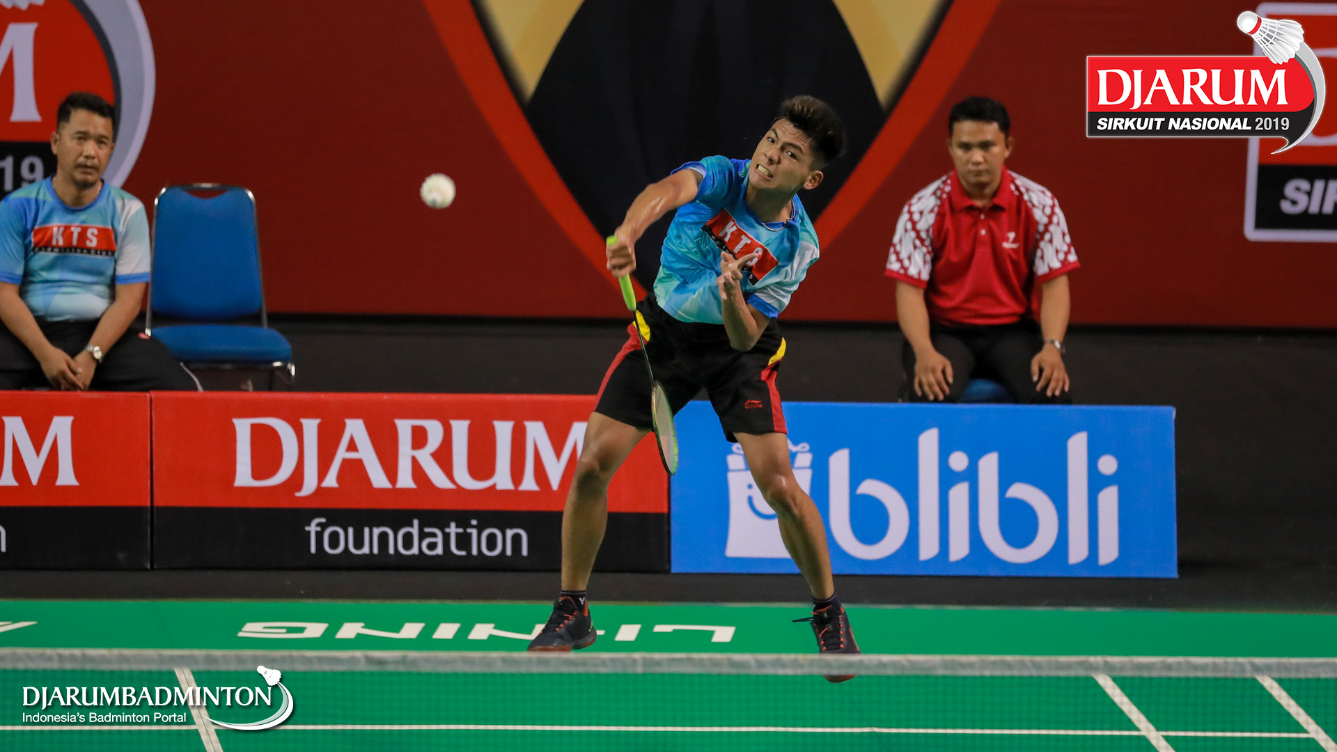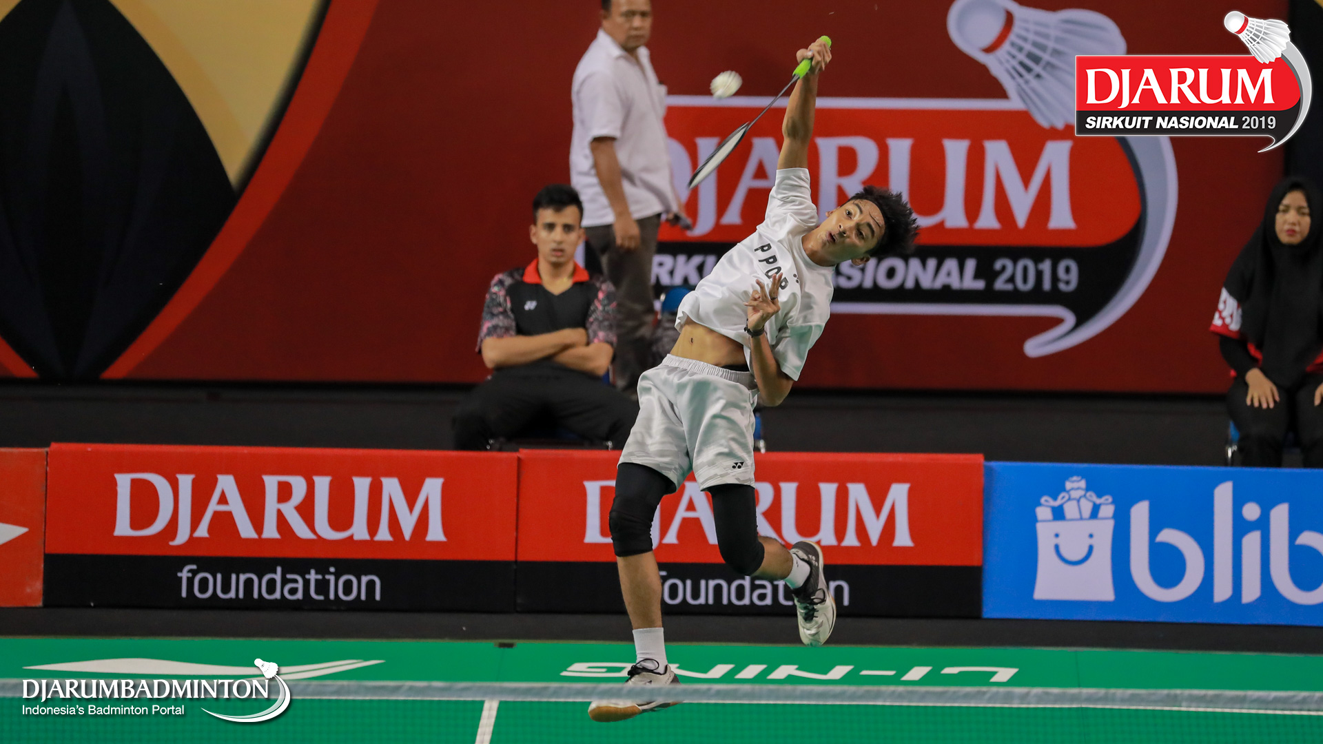 Classius Chris Belandro (Kusuma Tangkas) bersiap menyambar pengembalian