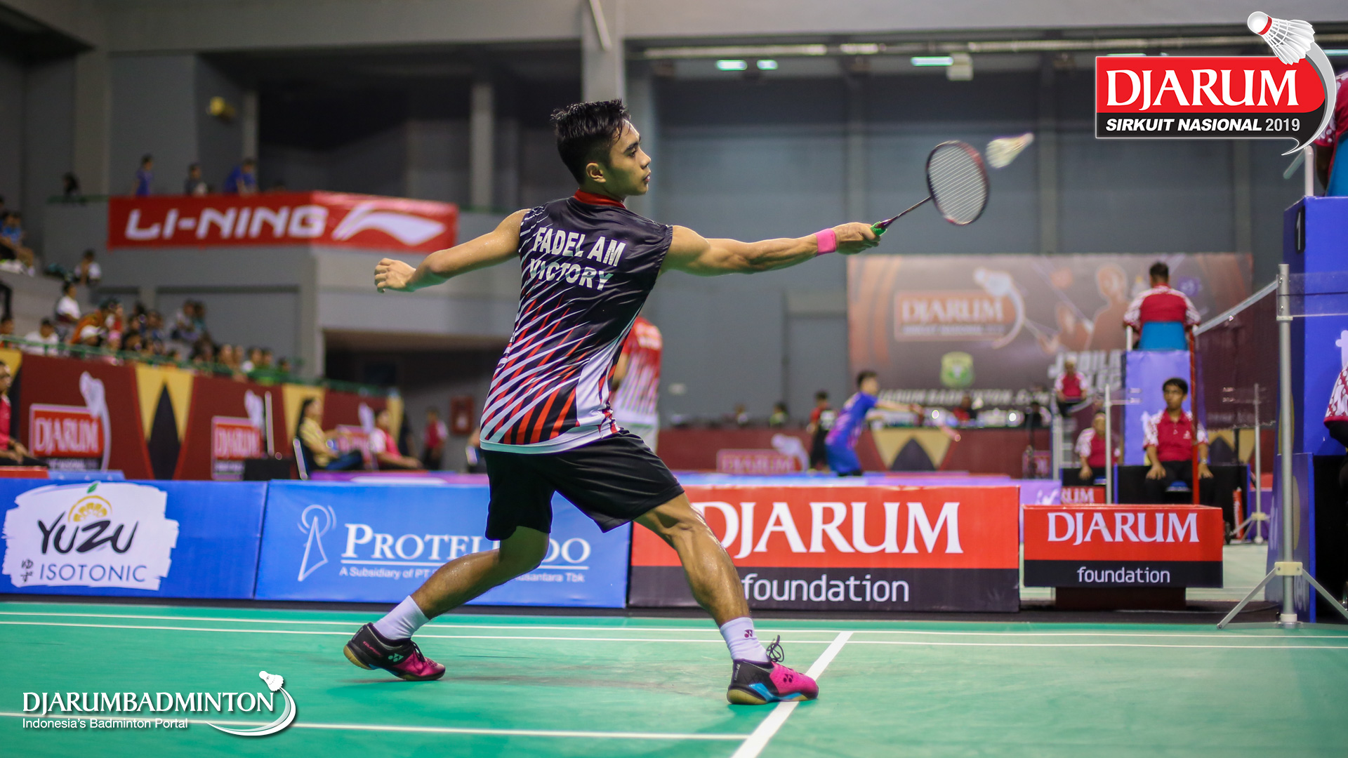 Andi Fadel Muhammad R (PB Victory Bogor, Jaktim) mengembalikan shuttlecock