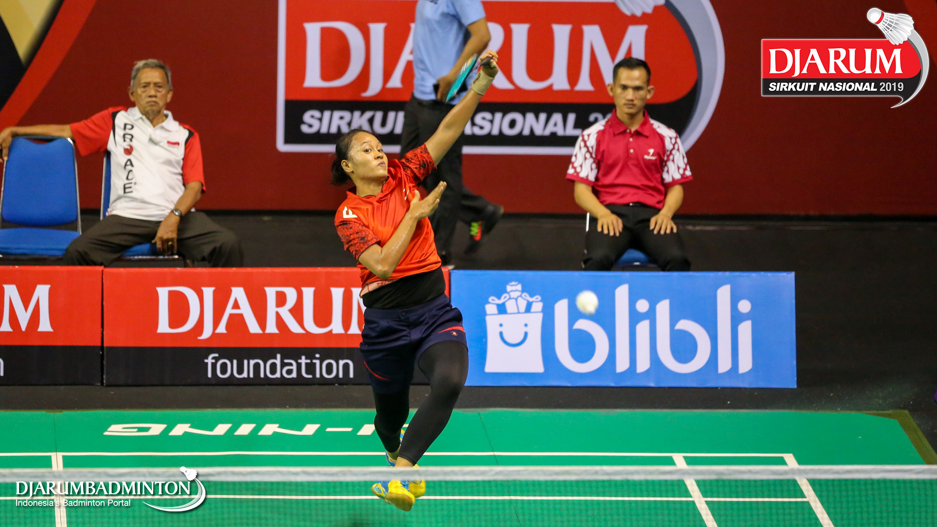 Ummy Ghoriibah (Emas Centre Jambi) mengembalikan shuttlecock