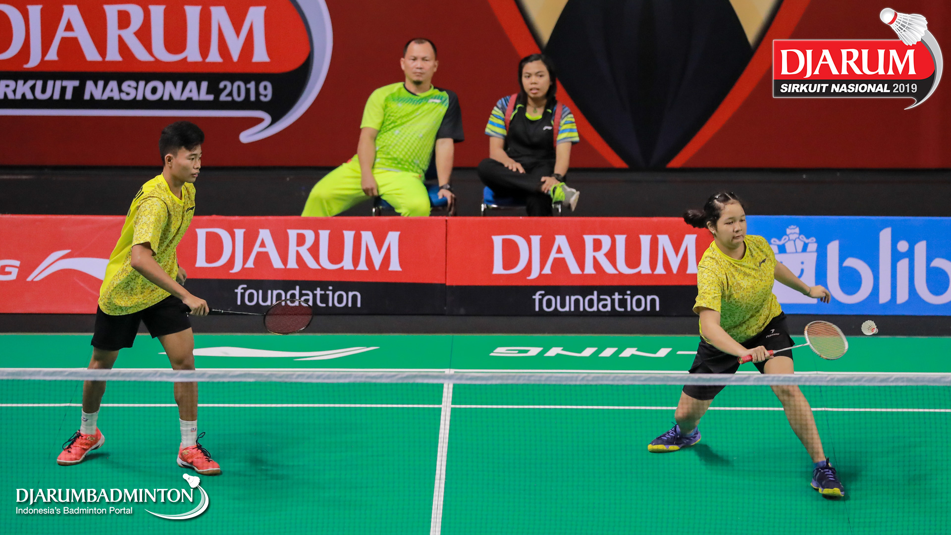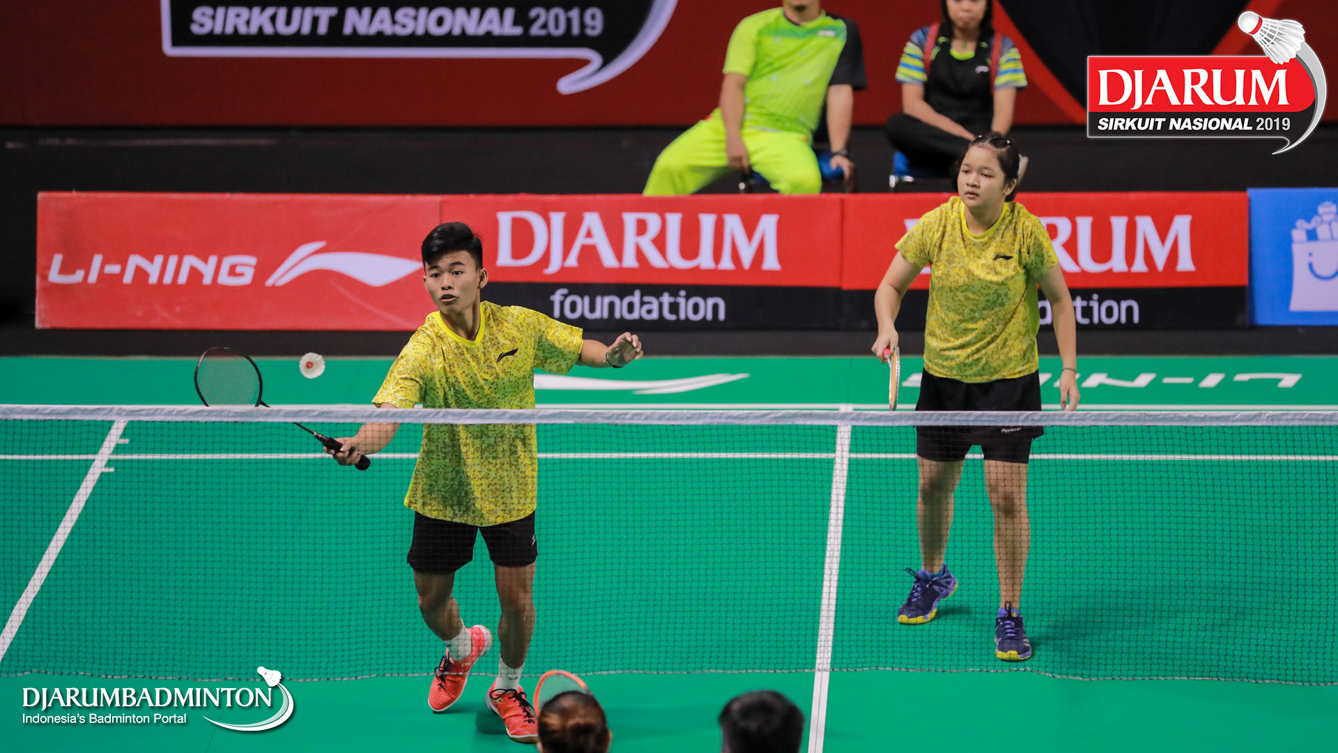 Adjie Sendang Nugroho+Sakira Salsabila (Pusat Pelatihan Olahraga Pelajar) berusaha menahan serangan