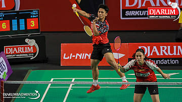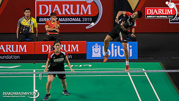 Dejan Ferdinansyah+Serena Kani (PB Djarum, Kudus) menyambut pengembalian