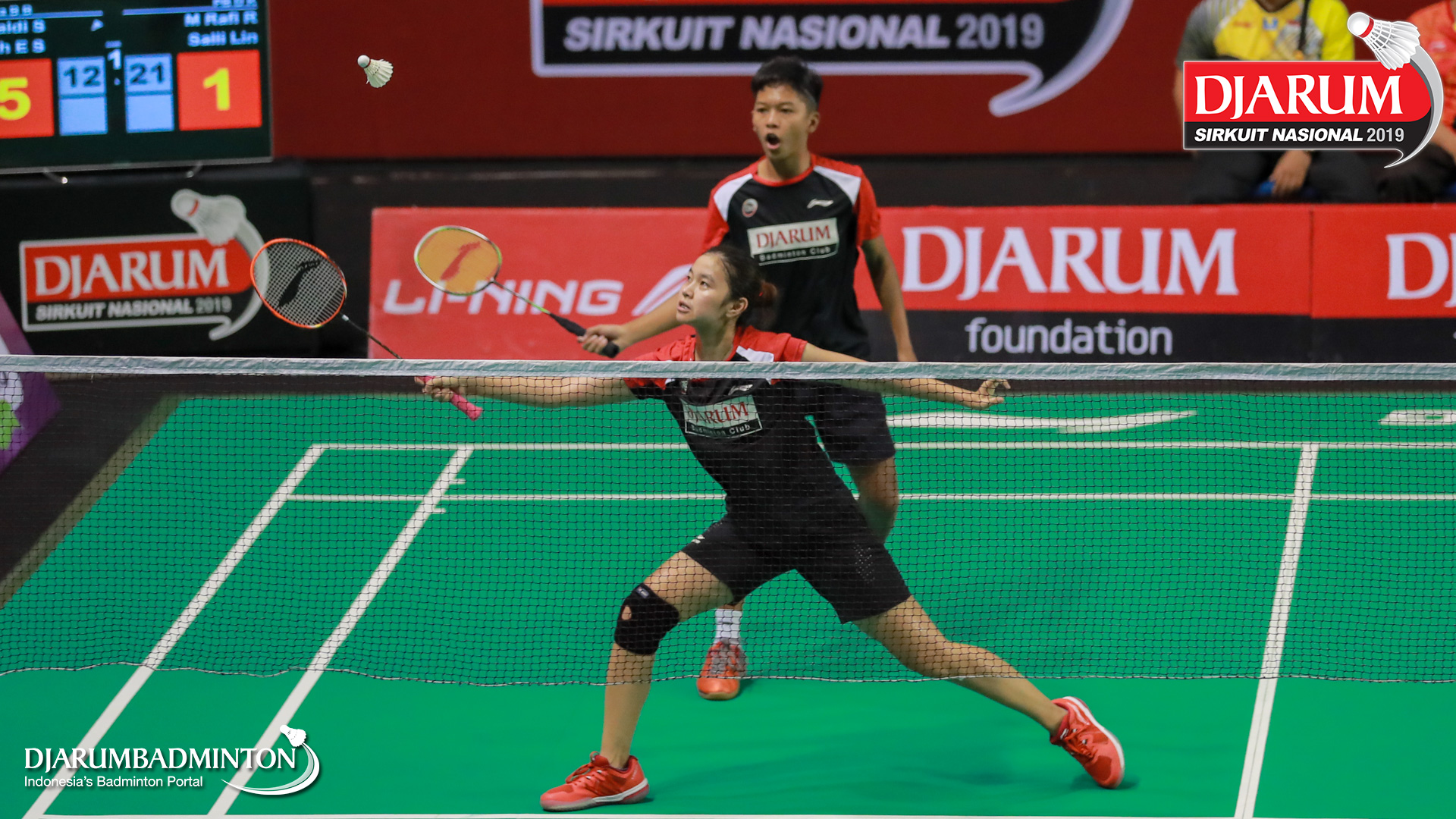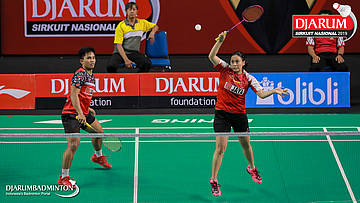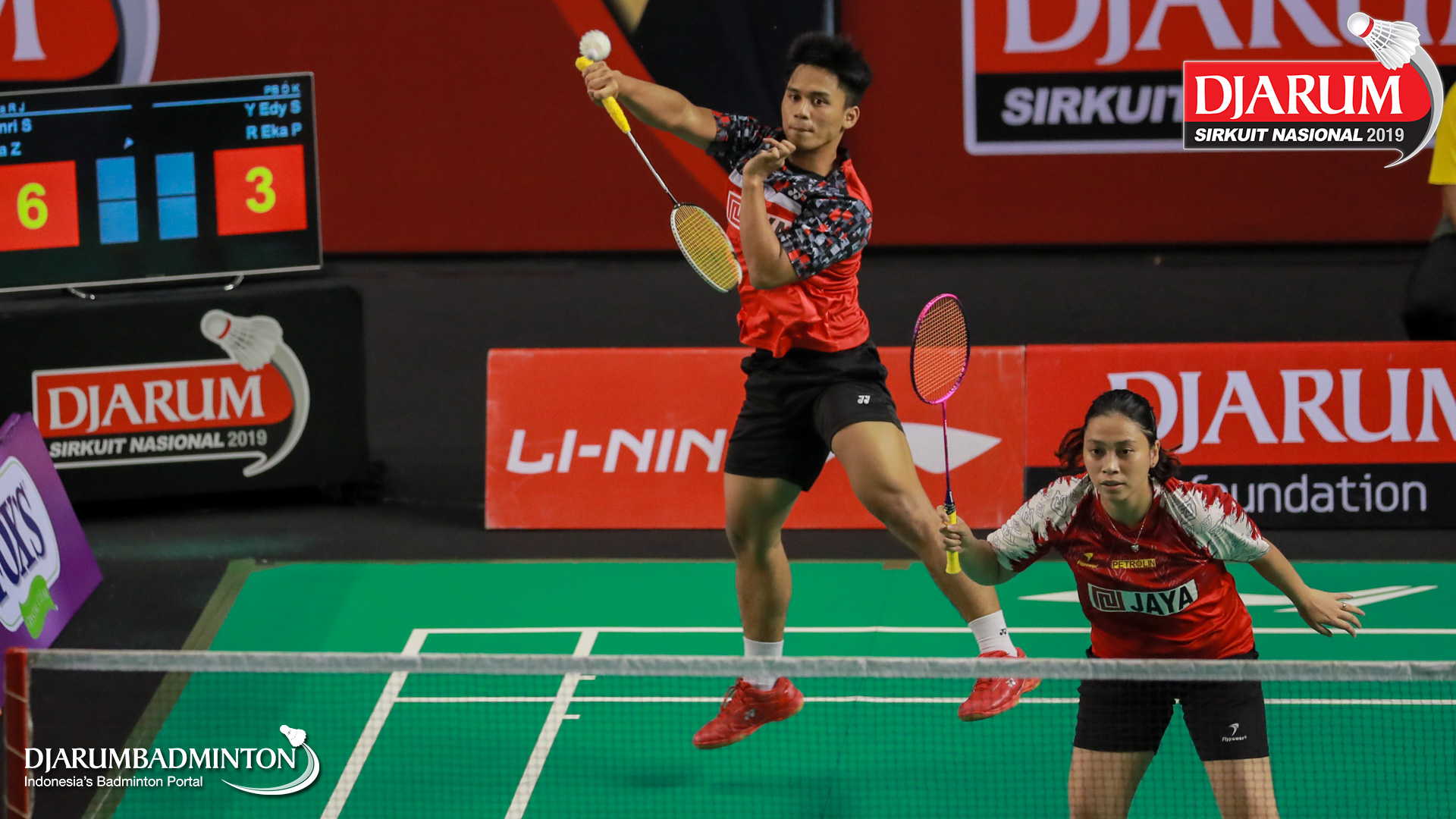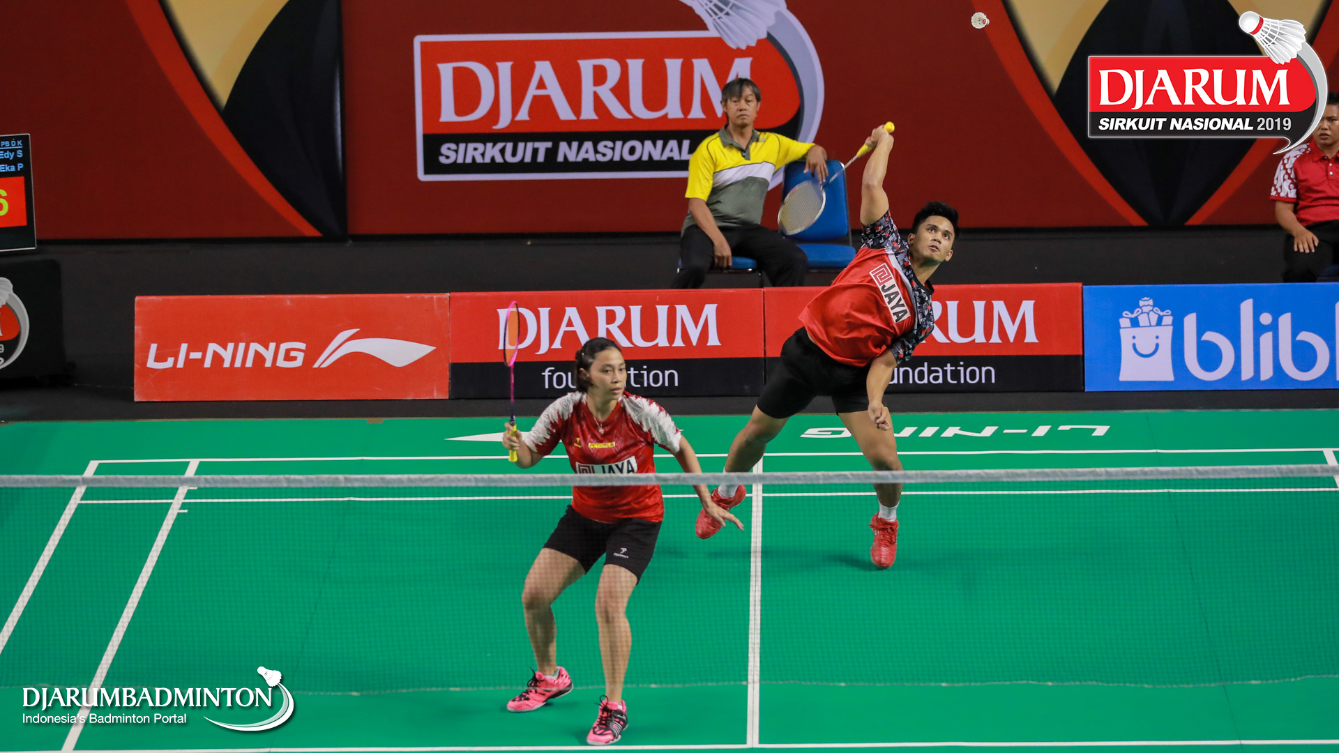Amri Syahnawi+Pia Zebadiahbernadet (Jaya Raya Jakarta) mengembalikan serangan