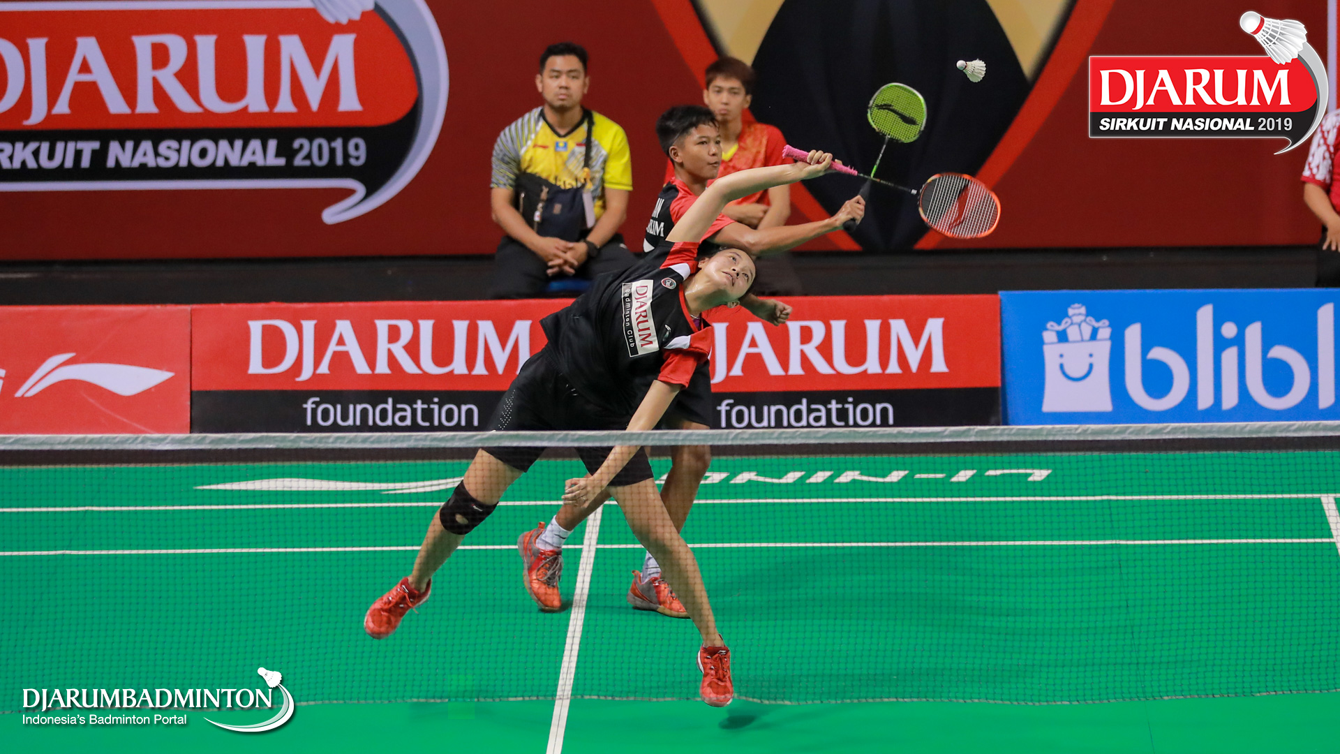 Amri Syahnawi+Pia Zebadiahbernadet (Jaya Raya Jakarta) melepaskan serangan