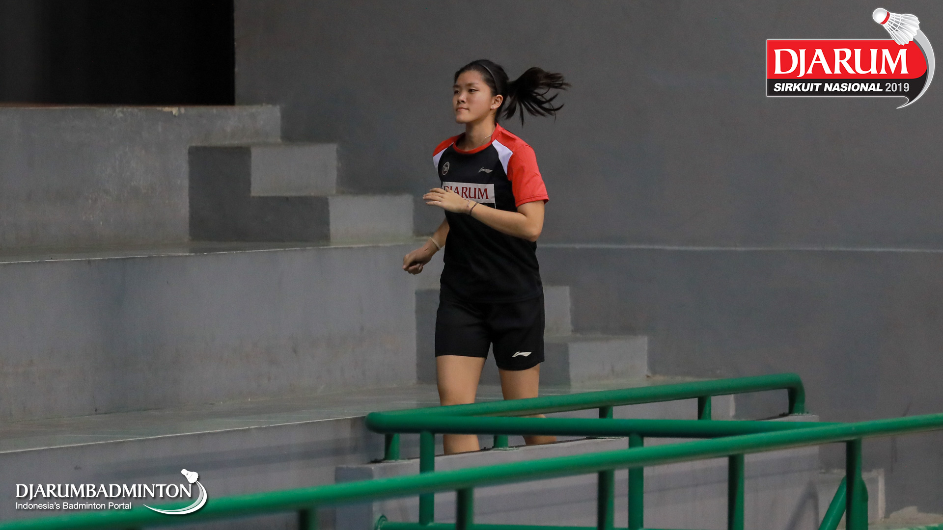 Serena Kani (PB Djarum, Kudus) melakukan pemanasan sebelum bertanding