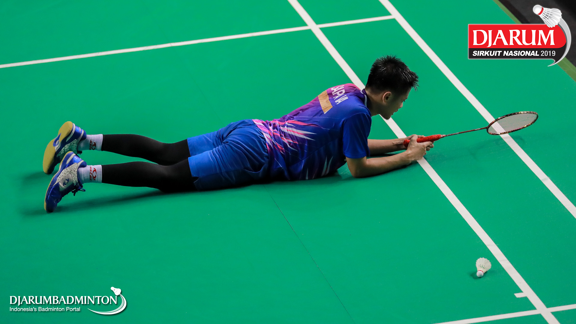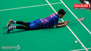 Vicky Angga Saputra (Tangkas , Jaksel) terjatuh saat berusaha menggapai shuttlecock