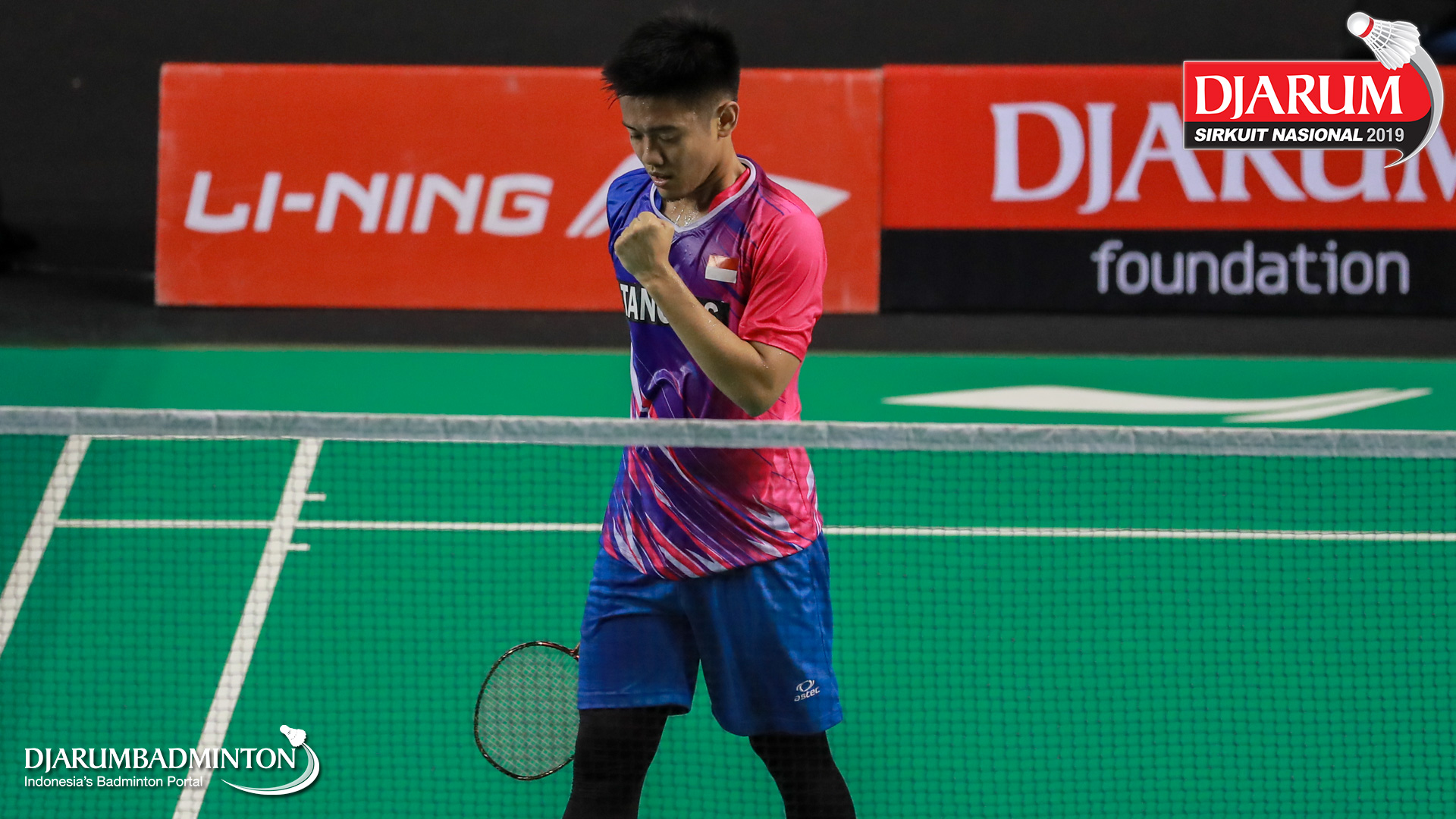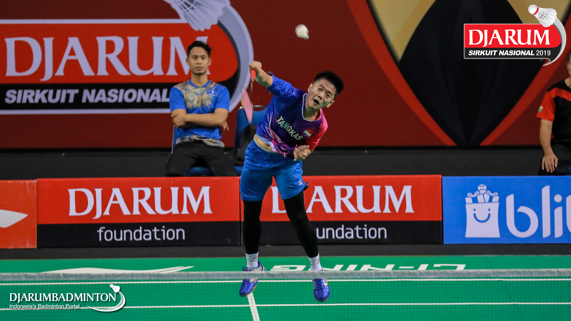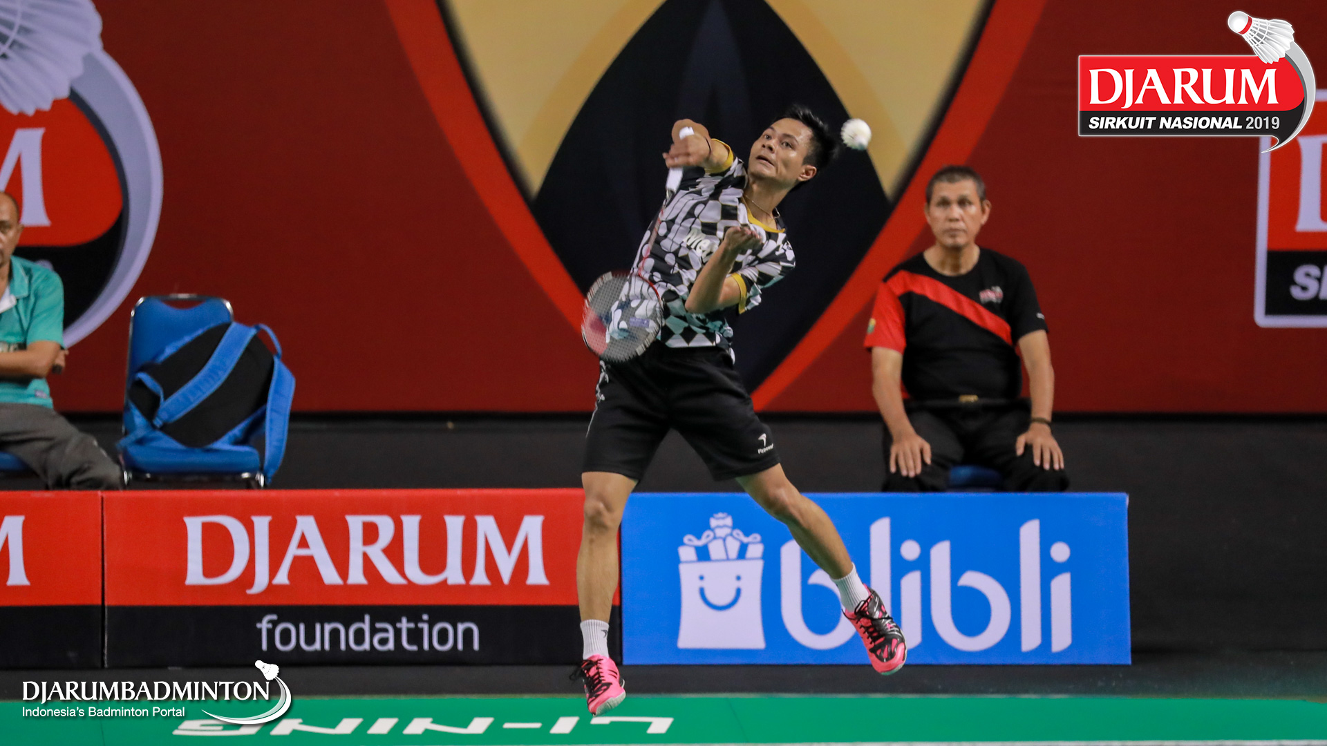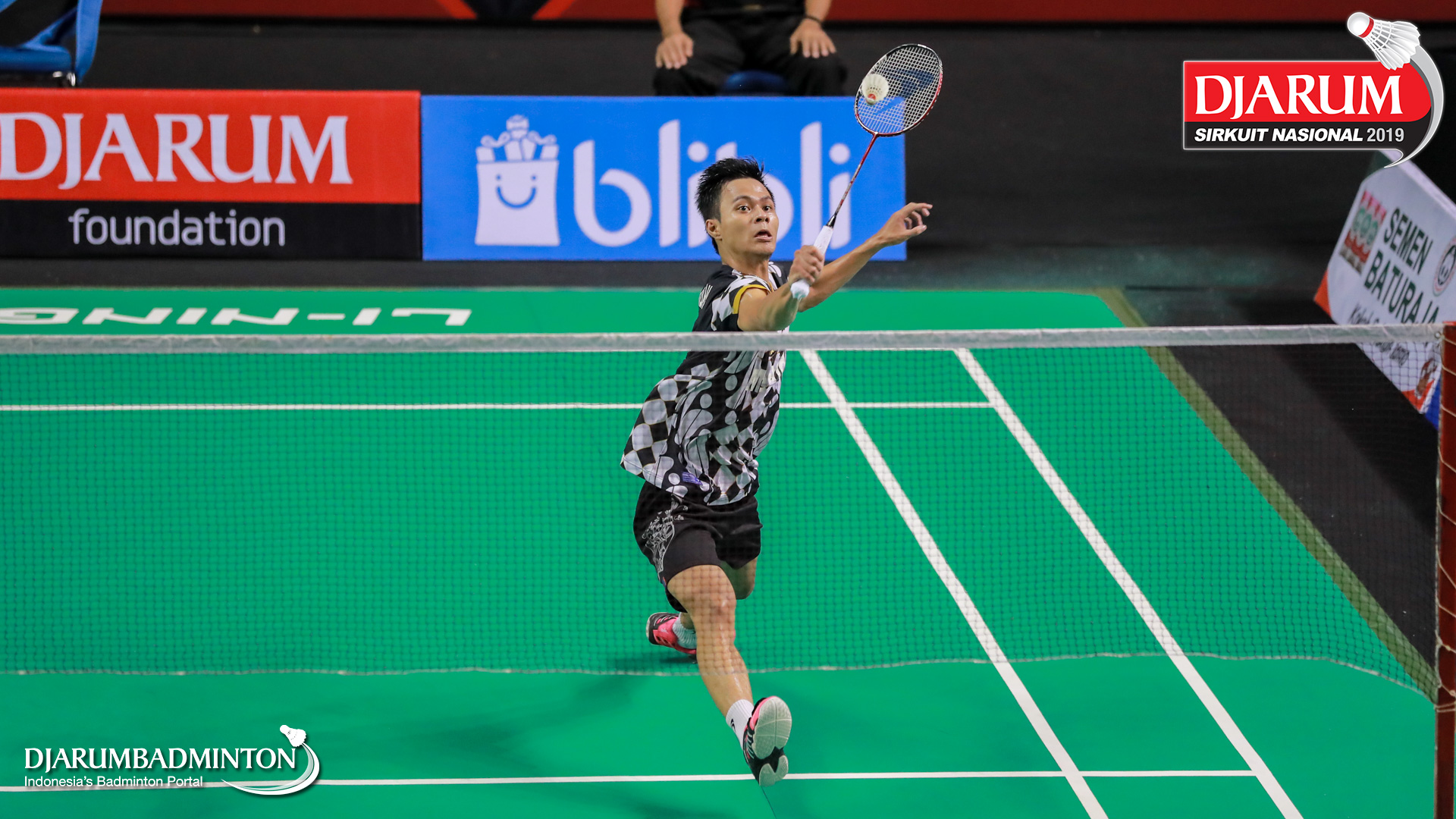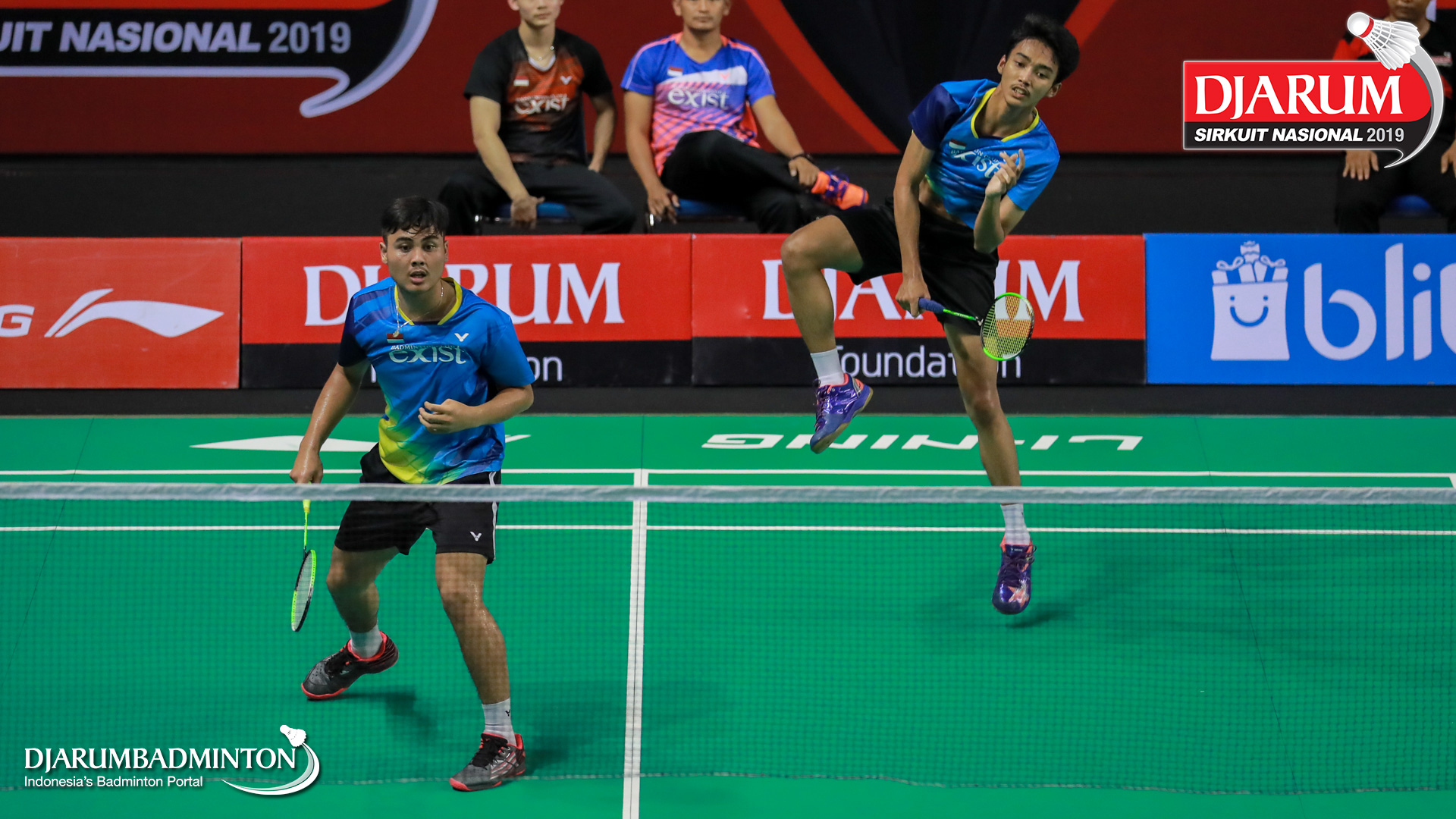 Arya Adi Saputra+Muhammad Yusuf Maulana (Exist Badminton Club) melepaskan serangan