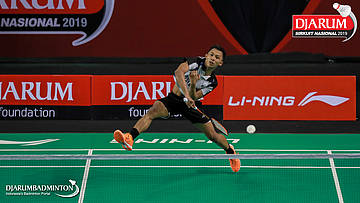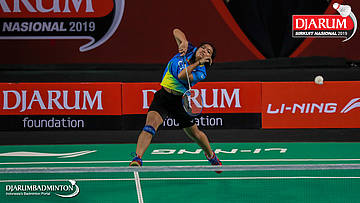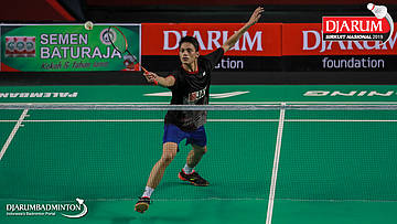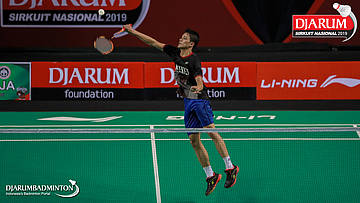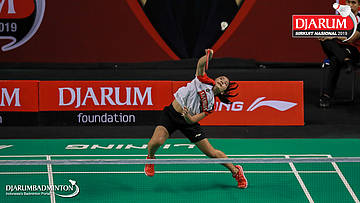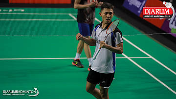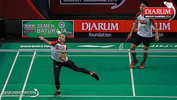 I Putu Pande Sheva Brahmantya Putra+Sintia Dewi Yuliani (PB Djarum, Kudus) menyambar pengembalian tanggung