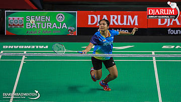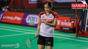 Irdina Naurah Mirza (PB Djarum, Kudus) menyambut shuttlecock