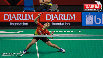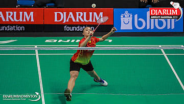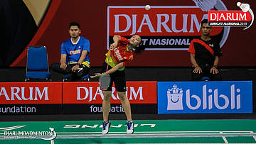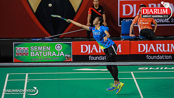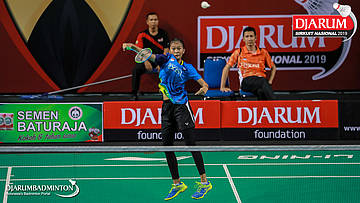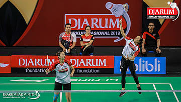 Salli Lin+Sintia Dewi Yuliani (PB Djarum, Kudus) bersiap menyambut shuttlecock