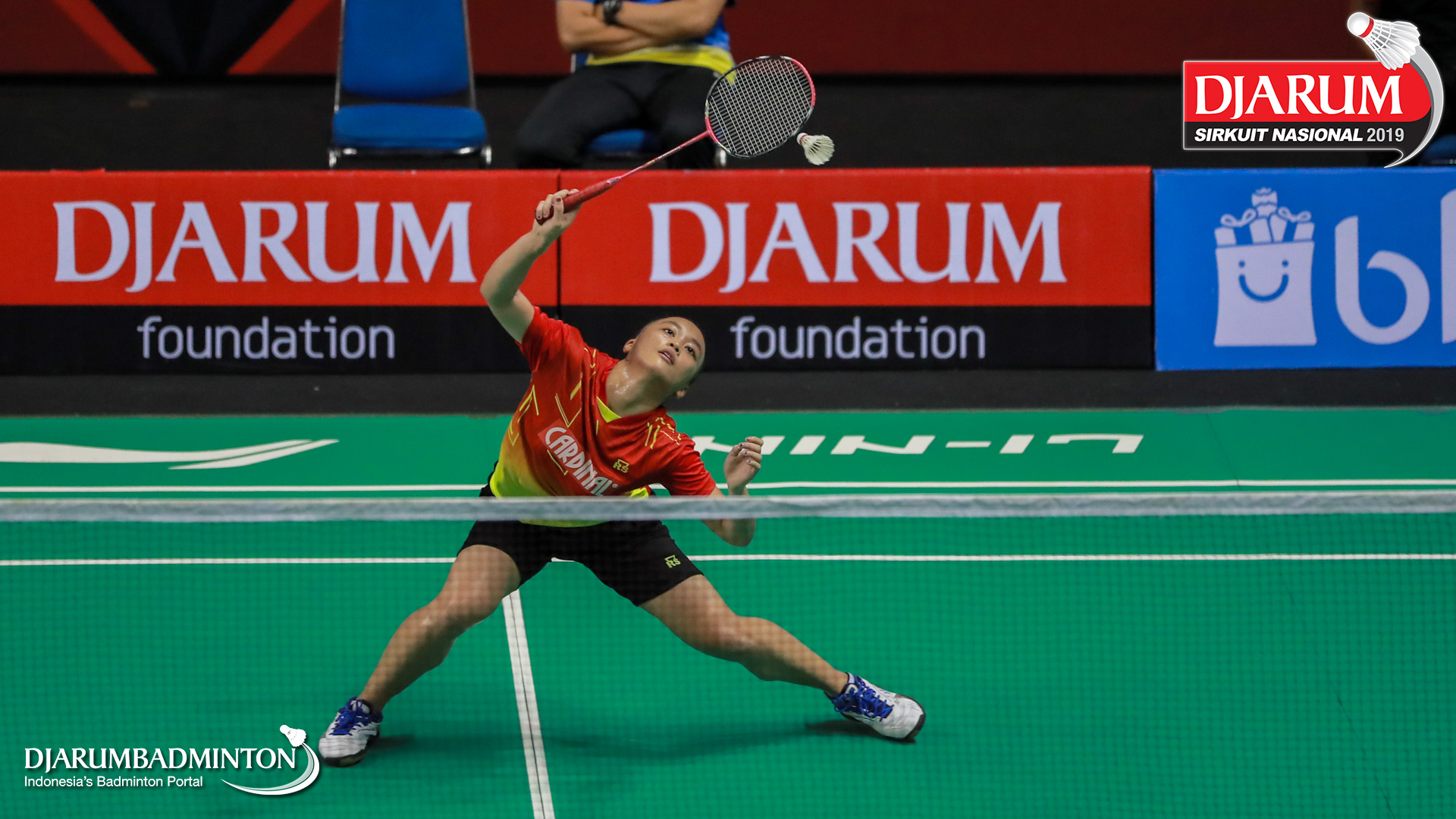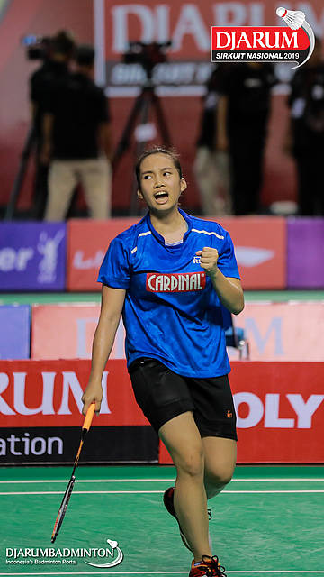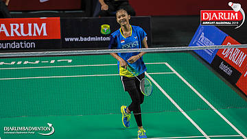 Angelica Febriana Timporok (Mutiara Cardinal, Bandung) menyambut shuttlecock