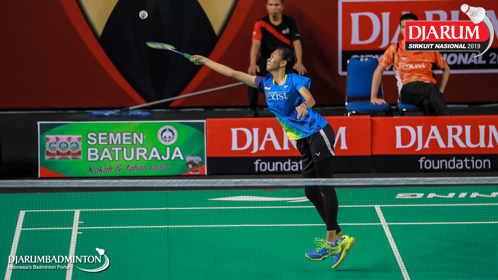 Siti Sarah Azzahra (Exist Badminton Club) mengembalikan serangan