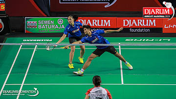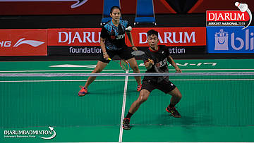 Ferdian Mahardika R+Anggia Shitta Awanda (Jaya Raya Jakarta) mengembalikan shuttlecock