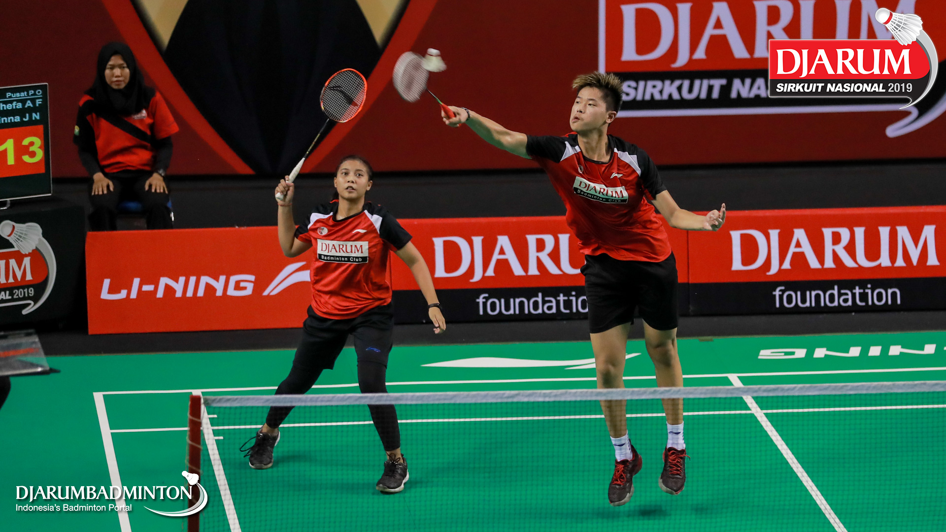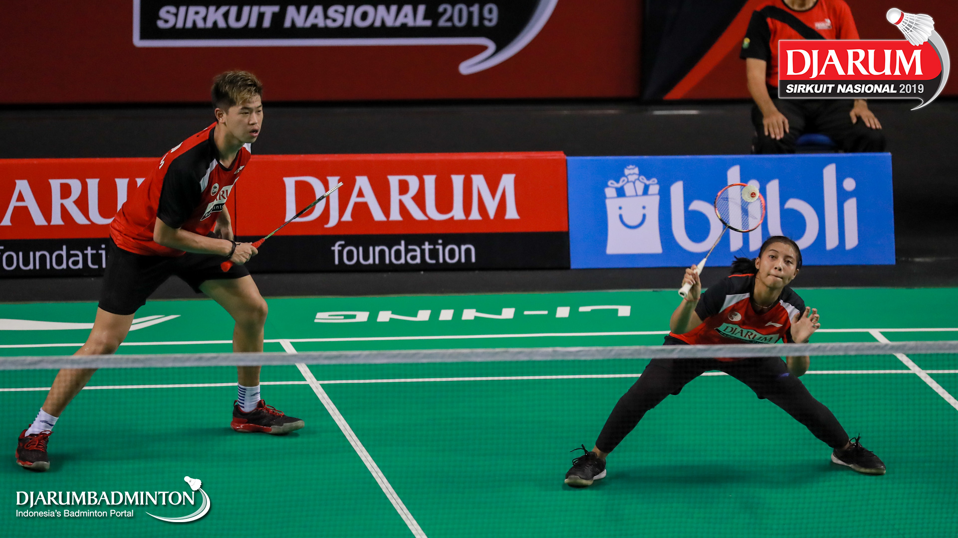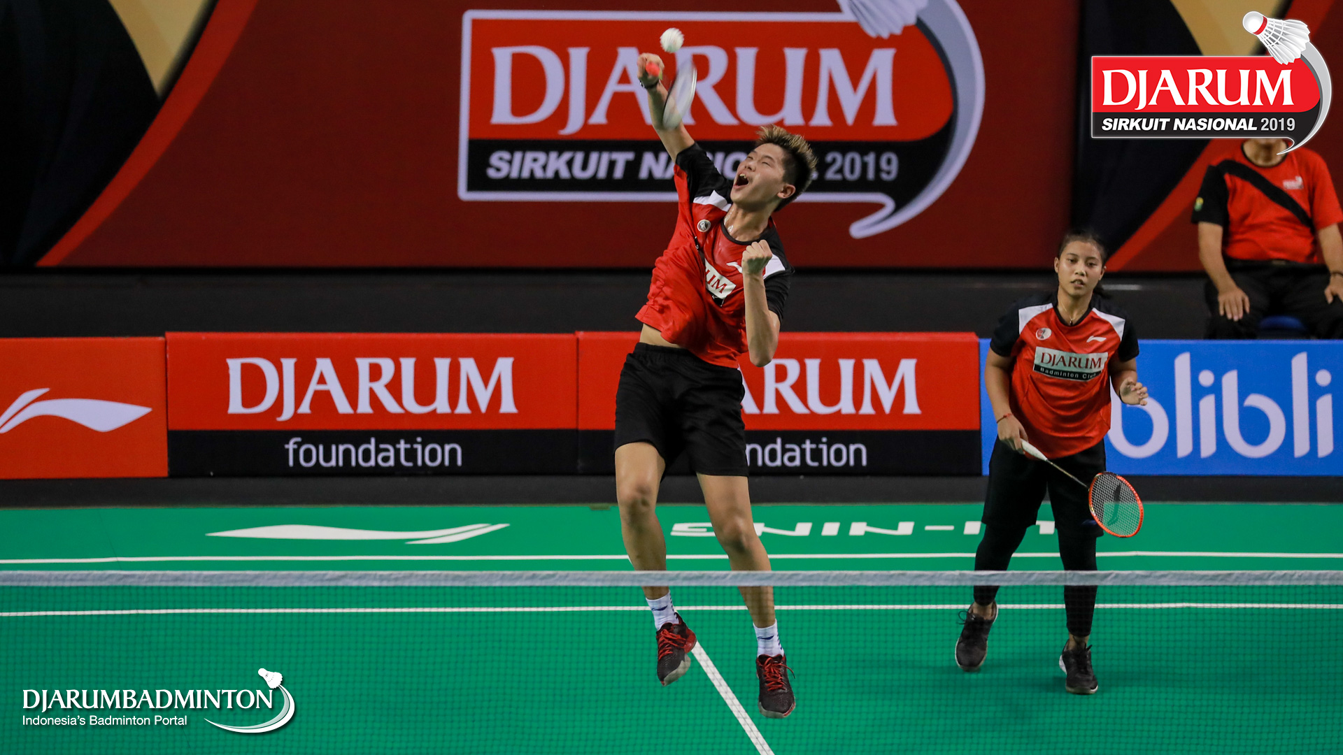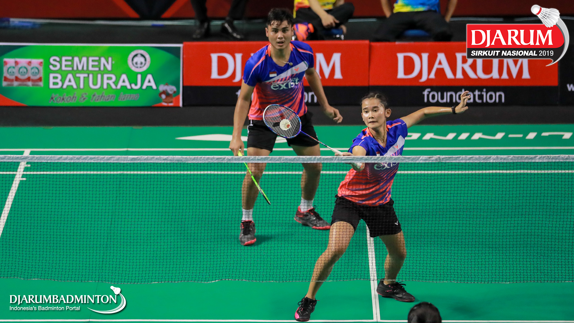 Muhammad Yusuf Maulana+Silvia Ratih (Exist Badminton Club) menyambut shuttlecock