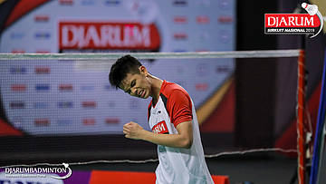 Selebrasi kemenangan Aldy Firmanda (PB Djarum, Kudus)