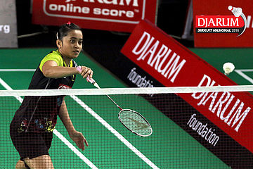 Ana Rovita (Pertamina Fastron) mengembalikan shuttlecock.