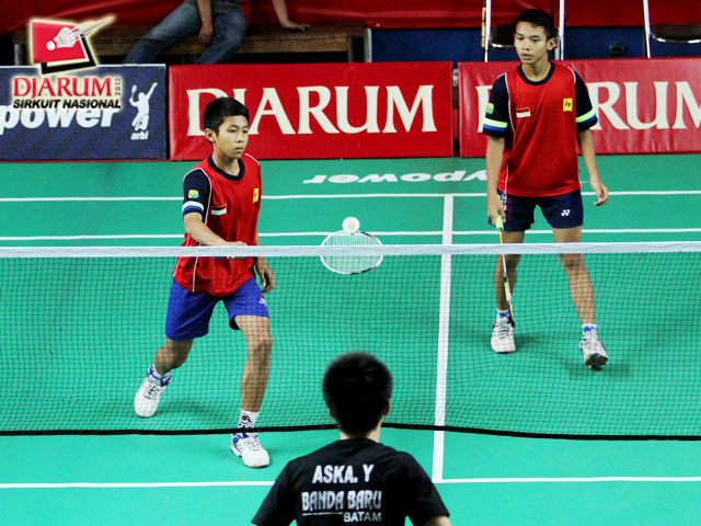 Pasangan ganda remaja putra dari PB. Banda Baru Batam, Aska Yosuki dan Marjuki.