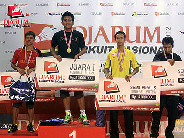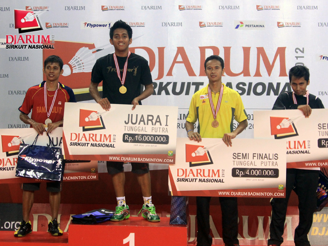 Juara tunggal dewasa putra berpose bersama usai pembagian hadiah.