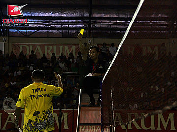 Rendra Wijaya (PB Djarum) mendapatkan kartu kuning dari wasit)