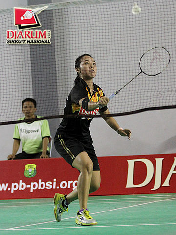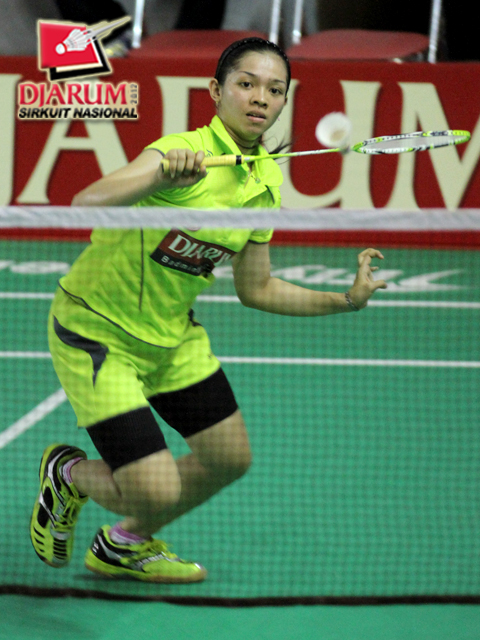 Tresna Novelia (PB Djarum Kudus) saat melakukan serve.