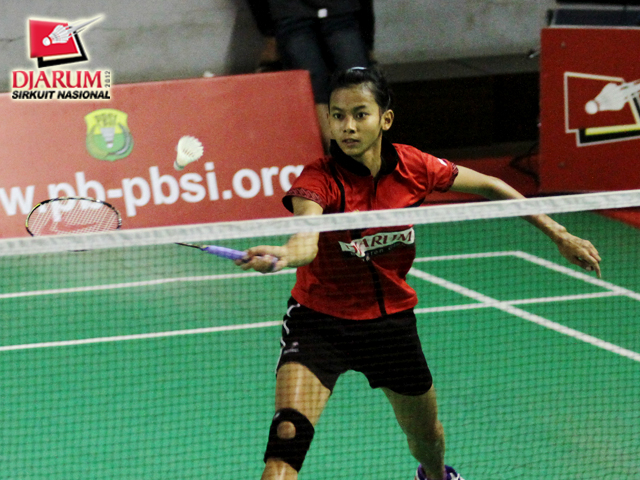 Febby Agguni (PB Djarum Kudus) melepaskan back hand keras ke arah Natalia Deiske (Tangkas Specs).