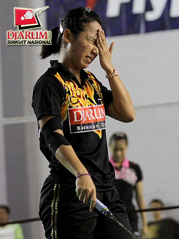 Ekspresi Ana Rovita (PB Djarum Kudus) saat kehilangan poin.