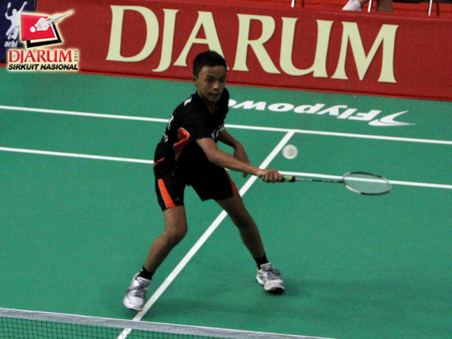 Salah Satu Peserta Tunggal Pemula Putra yang Sedang Bermain, Ryan Januar dari Klub Badminton Exist