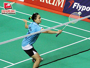 Tresna Novelia Citra Resmi (Djarum Kudus) Mencoba Mengembalikan Bola dari Lawan