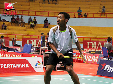Sahroni Arief(PPLP DKI Jakarta) dari Ganda Campuran Taruna Tetap Terlihat Semangat Walaupun Tertinggal 10 Poin