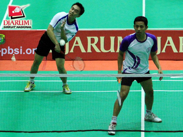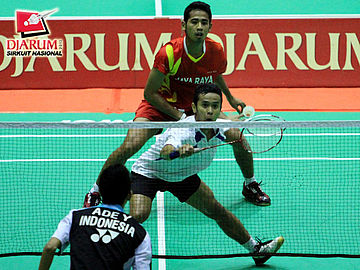 Pasangan ganda dewasa putra, Rendra Wijaya / Rian Sukmawan dari Djarum Kudus yang sedang berhadapan dengan Amin Randam (Berkat Abadi Banjarmasin) / Andy Lim Wey Sheng (Malaysia).