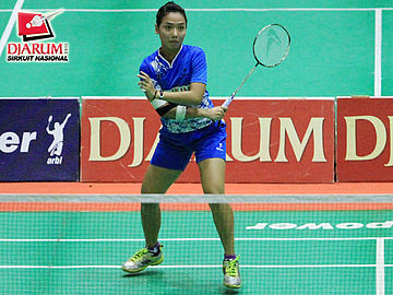 Pemain tunggal dewasa putri, Ana Rovita (Djarum Kudus) yang sedang berhadapan dengan Pia Zebaidah Bernadet (Pusdiklat jaya Raya).