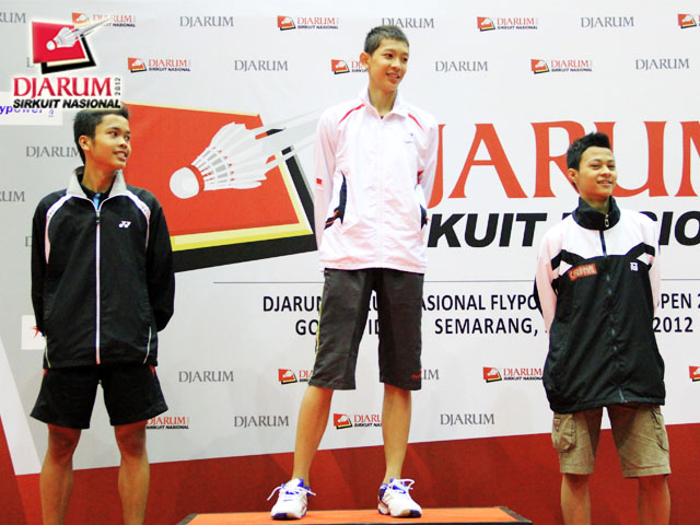 Para pemenang tunggal remaja putra berfoto bersama di podium.