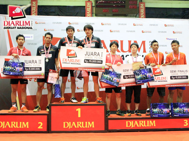 Para pemenang ganda dewasa putra berfoto bersama di podium.
