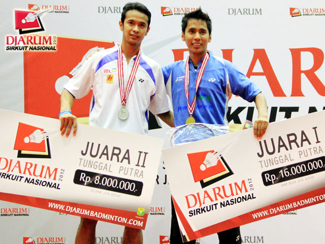 Pemenang tunggal dewasa putra berfoto bersama, Senatria Agus Setia Putra (SGS PLN) dan Alamsyah Yunus (Pertamina).