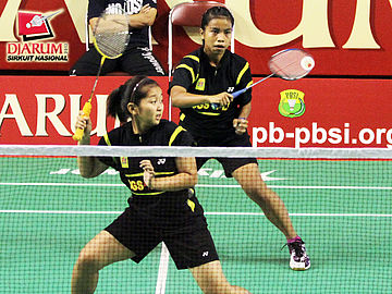 Pasangan ganda taruna putri asal SGS PLN, Dina Rahayu/Fina Nuraena berhasil menahan serangan bertubi-tubi yang dilepaskan Afni Fadillah/Putri Sekartaji (Ragunan).
