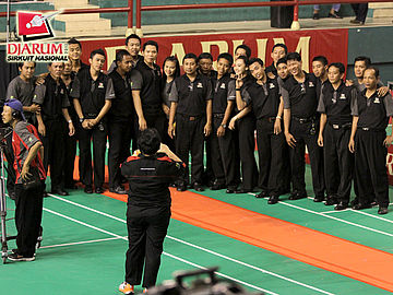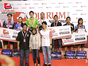 Para wasit Djarum Flypower Sirkuit Nasional (Sirnas) Jatim Open 2012 berpose bersama sebelum laga final dimulai.