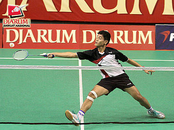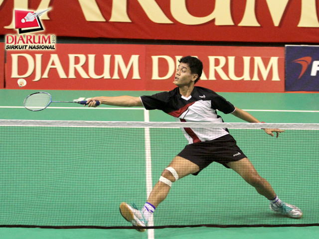 Bayu Pangisthu (PB Djarum Kudus) mengembalikan bola ke arah Ari Januari (Tangkas Specs).