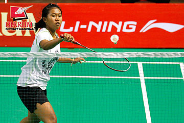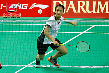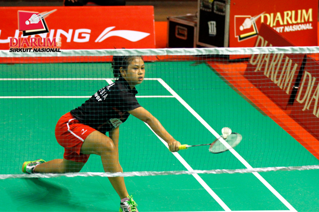 Rifa Putri Aida (PB Djarum) berhasil menyambut pengembalian dari Yuliani (Bisma Ubud).
