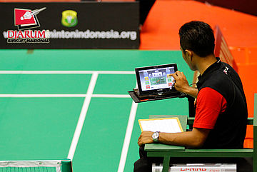 Salah seorang wasit saat mengoperasikan live score.