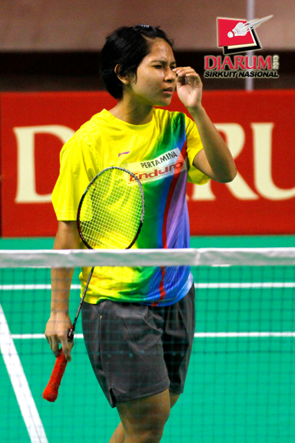 Ekspresi kekecewaan Ganis Nurrahmandani (Pertamina Indonesia) saat kehilangan poin.