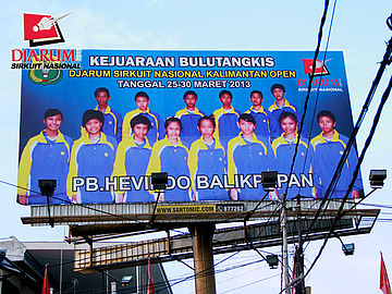 Billboard Djarum Sirnas Kaltim Open 2013 terpampang besar dan jelas sebelum memasuki GOR Hevindo, Balikpapan.