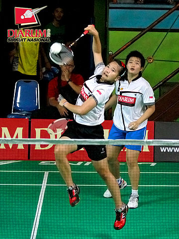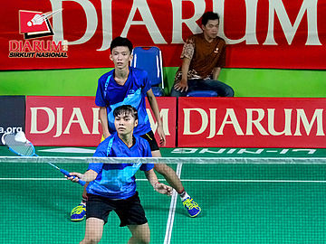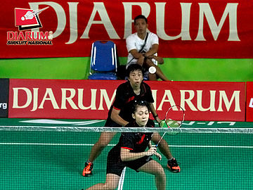 Randy/Ayu (Fila Watch) mengembalikan kok ke arah pasangan Saleh/Febriana (D Ten's).