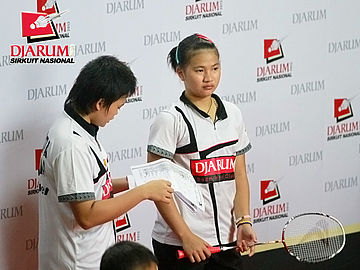 Pasangan Ganda Remaja Putri PB Djarum, Aliana Kurniawati/Thalia Clara saat bersiap sebelum bertanding.