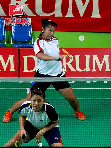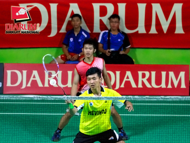 Andi/Hendra (Hevindo) berusaha mengembalikan kok ke arah Hasriyadi/Saleh (D Ten's).